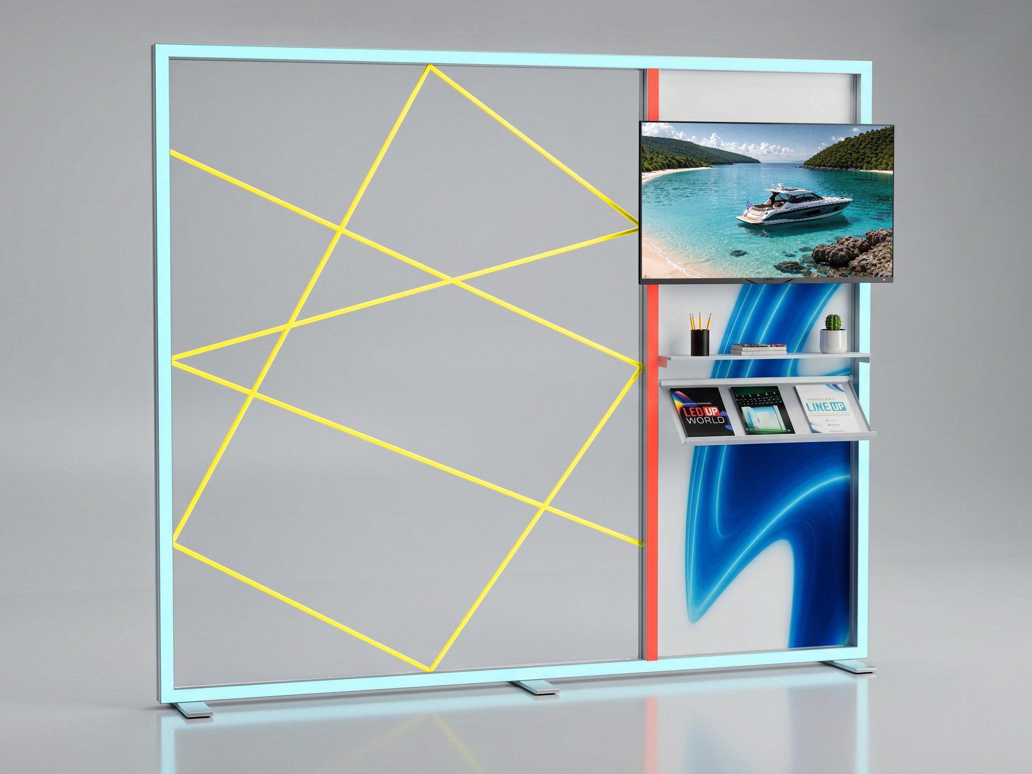 Die LINEUP support pole erweitert dein System um zusätzliche Struktur und Stabilität. Sie ermöglicht individuelle Layouts, mehrteilige Displays und neue Aufbauvarianten innerhalb des bestehenden Rahmens.